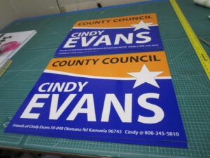 Running a campaign for office on Hawaii Island? Want to do the right thing and source your campaign materials locally? In the 2022 State and Local elections, we’re proud to make hundreds of candidate yard signs and banners. We also did several targeted mail campaigns for candidates.