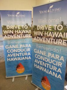 Free standing/Retractable banners – These are a favorite for trade shows and conventions. The banners are nearly 80” tall and 33” wide and retract into an easy-to-carry holder.